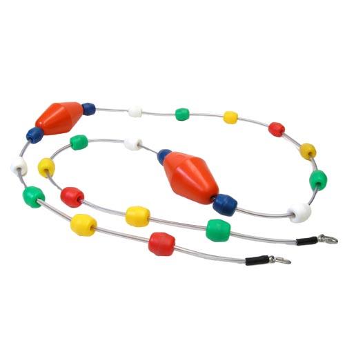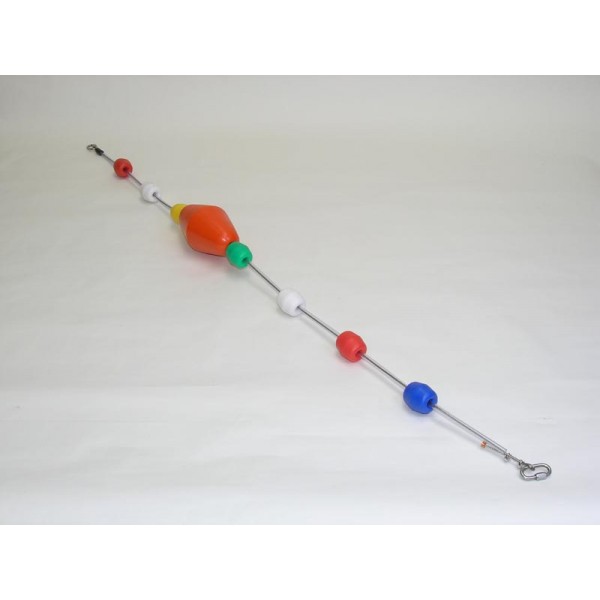 De afscheidingslijn is gemaakt op een staalkabel (V4 kwaliteit) en voorzien van 4 holasteen drijvers (70x65 mm) en 4 afstandhouders per meter. U kunt naar eigen wens oranje Splash drijvers op de zwemlijn laten aanbrengen. Deze kegels worden NIET standaard meegeleverd. In combinatie met de oranje Splash drijvers biedt deze afscheidingslijn ook een groot drijfvermogen.