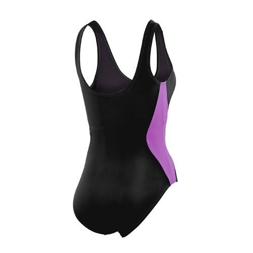 BECO revolutional body shaping badpak met C-cup in zwart met kleurbaan aan de zijkanten in bessen kleur.