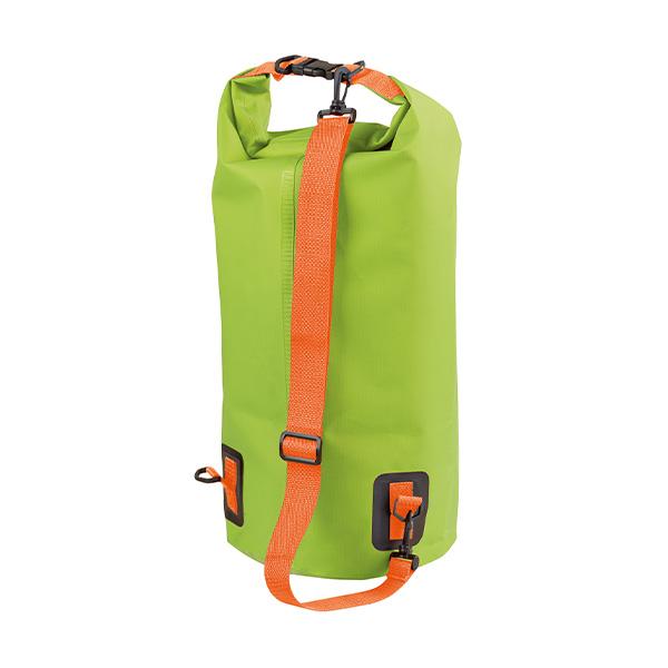 De waterdichte tas is gemaakt van stevig vinyl, dankzij het materiaal is de inhoud van deze drybag goed beschermd, ook in het water. De dry bag heeft rol-top sluiting, door de opening van de tas te sluiten en om te rollen, wordt de tas waterdicht afgesloten. De dry bag is verder uitgerust met een ventiel waarmee je de tas kunt opblazen, dat is vooral handig als de tas in het water kan vallen, zo blijft de tas drijven.
