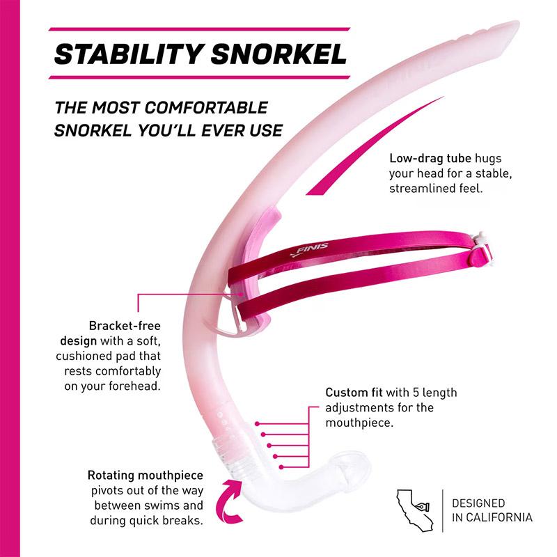 De stability snorkel speed is de eerste zwemmerssnorkel zonder brede hoofdsteun en biedt toch comfort en stabiliteit in het water, tijdens het zwemmen zou je bijna vergeten dat je een snorkel draagt. De Finis stability snorkel speed biedt verschillende mogelijkheden en voordelen ten opzichte van andere zwemmersnorkels.