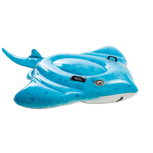 De Intex stingray ride-on is een opblaasbare rog. Durf jij met deze opblaasbare rog te gaan zwemmen? De opblaas rog is gemaakt van vinyl met een dikte van 0,25 mm en is voorzien van twee handvaten. De opblaas rog is aan de bovenkant blauw gekleurd en aan de onderkant wit gekleurd, met een moontje en kiewen, net echt! De opblaasbare rog is hartstikke leuk om mee te spelen in het water en om lekker op te drijven!
