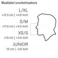 Het Unica snorkelmasker is leverbaar in meerdere maten.
