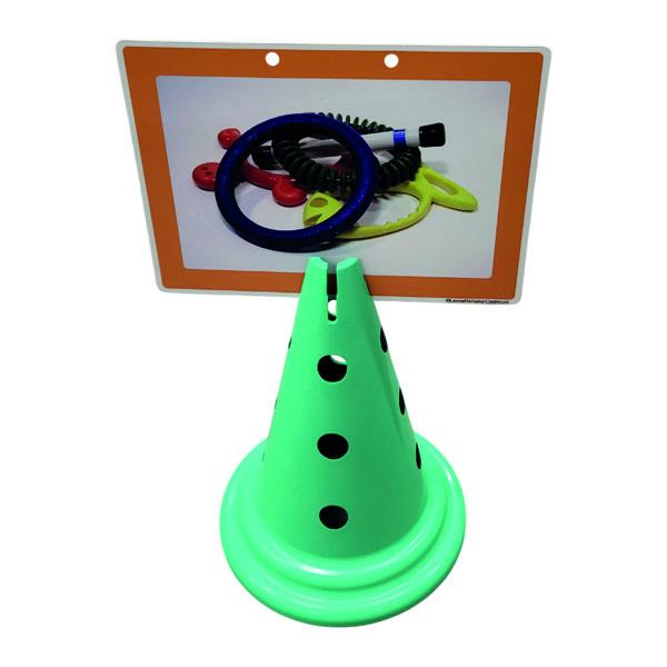 De groene Spordas pilon multi is gemaakt uit gerecycled kunststof en is goed te gebruiken bij sport- en spelactiviteiten.