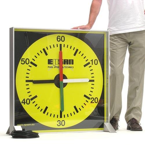 De trainingsklok heeft een witte wijzerplaat en het wijzerkruis is uitgevoerd in vier verschillende kleuren, één klok omloop per 60 seconden. Bestand tegen continue gebruik.