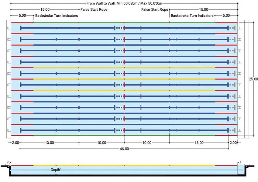 Indeling wedstrijdbad en kleuren wedstrijdlijnen
