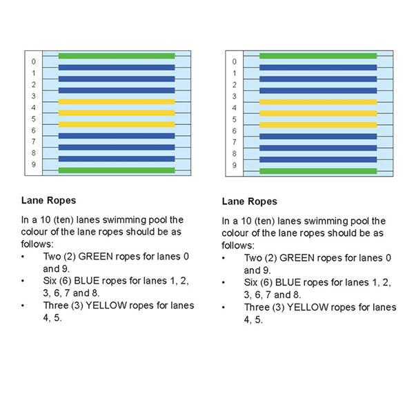 De World Aquatics hanteert verschillende kleuren wedstrijdzwemlijnen, afhankelijk van het aantal banen in het zwembad.